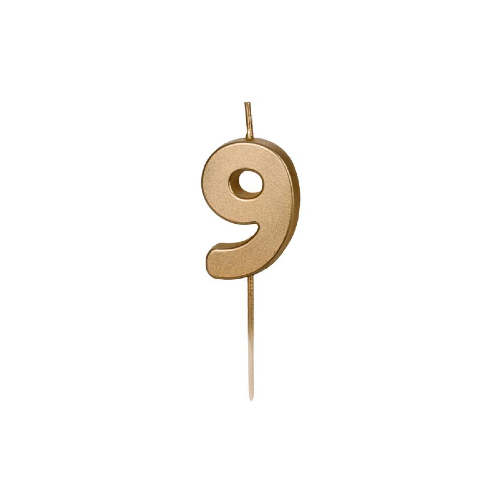 Candela compleanno con il numero 9 (nove), oro metallizzato.