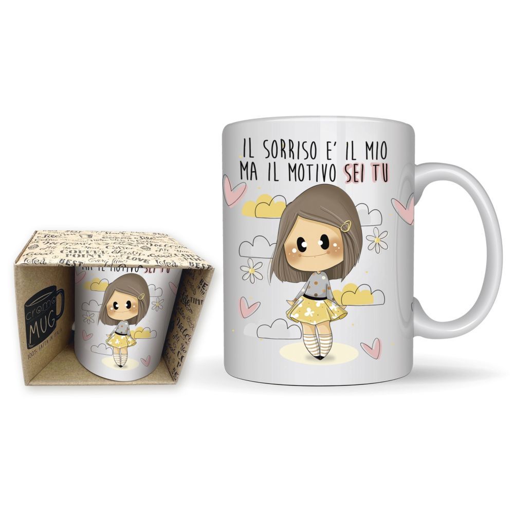 Collezione BUBINE – Tazza in ceramica BUBINA, Love, Sorriso e Motivo. LAVABILE IN LAVASTAVOGLIE.