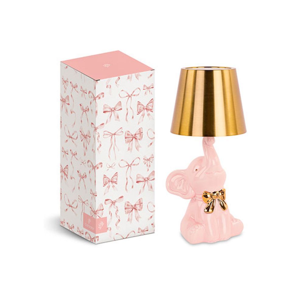 Lampada Elefantino in porcellana di colore rosa. Scatola regalo inclusa. Ideale come bomboniera e/o articolo da regalo.