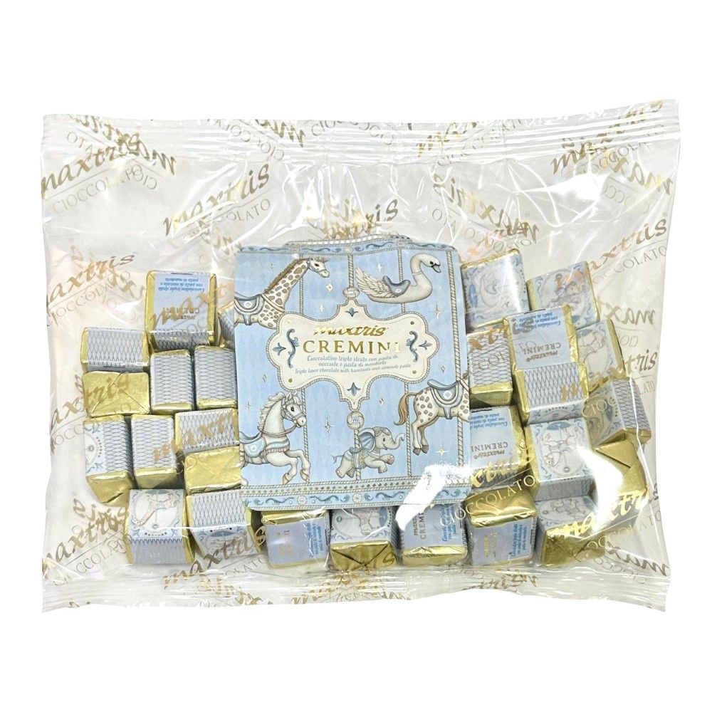La Bag Cremino Baby Celeste propone cremini confezionati singolarmente in un incarto raffinato, ideale per festeggiare l’arrivo di un bambino con un tocco di stile.