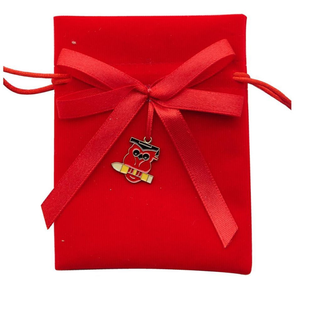 Sacchetto porta confetti laurea con gufetto di colore rosso. Bomboniera.