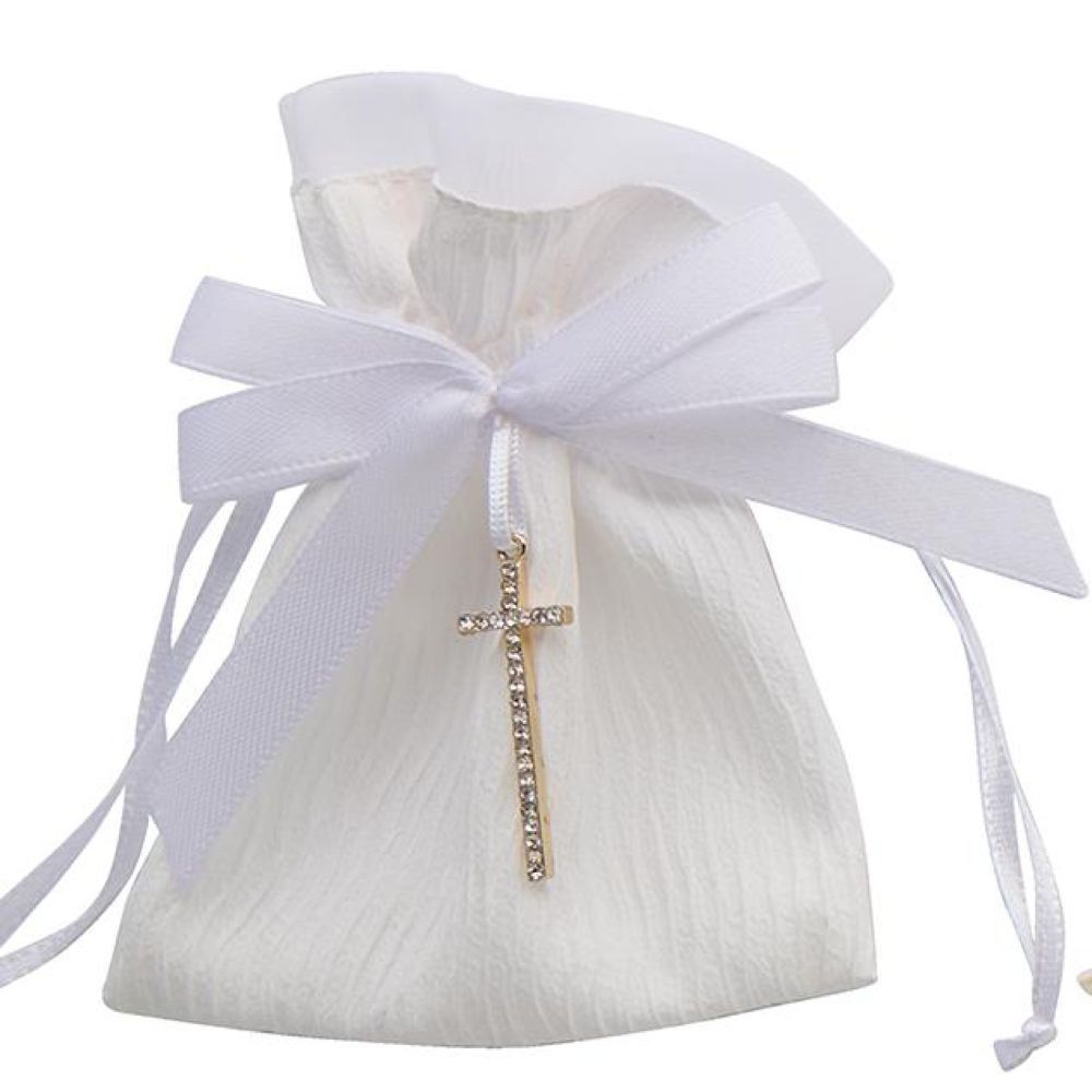 Sacchetto porta confetti con ciondolo a Croce. Bomboniera.